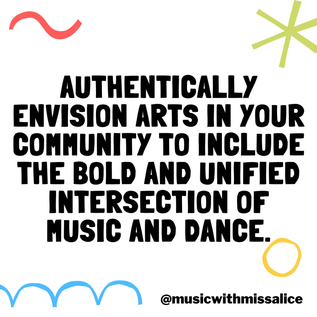 Authentically envision arts in your community to include the bold and unified intersection of music and dance. Once again, there is nothing that dictates us to uphold the status quo of white supremacy aside from the colonization of our minds.