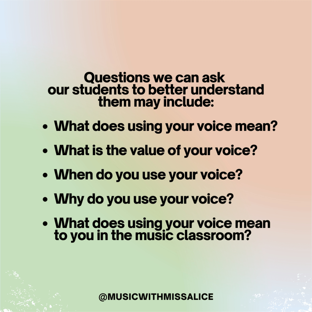 – What does using your voice mean to you in the music classroom?
