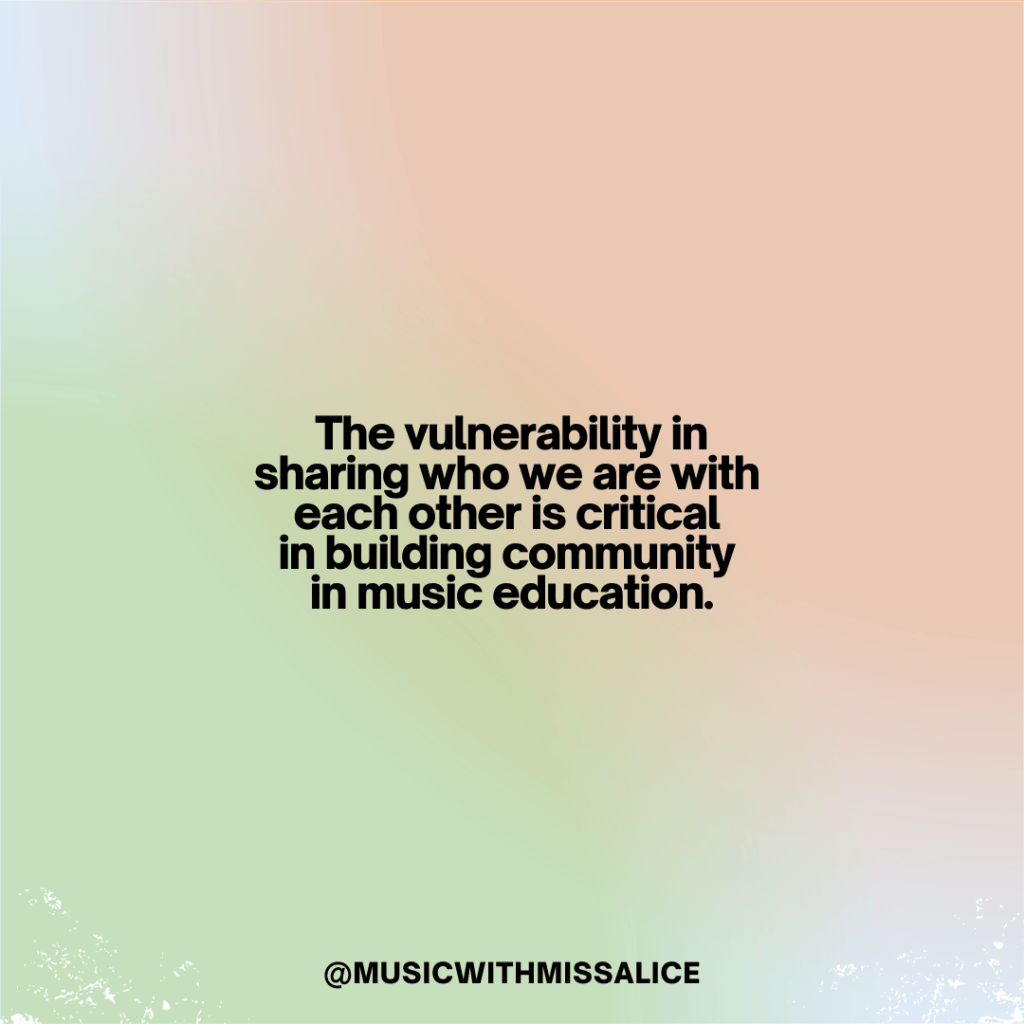 The vulnerability in sharing who we are with each other is critical in building community in music education.